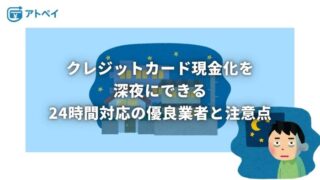 クレジットカード現金化クレジットカード現金化を深夜にできる24時間対応の優良業者と注意点 クレジットカード現金化を深夜に行う場合には事前準備が必須。今回はアトペイ編集部が実践して深夜に現金化ができた業者と共に、注意点や必須事項を紹介します。 2025.06.03クレジットカード現金化