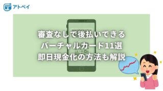 後払い現金化審査なしで後払いできるバーチャルカード11選|即日現金化の方法も解説 審査なしで後払い可能なバーチャルカード11選を比較紹介。即日発行やコンビニ対応、現金化まで対応したカードも網羅。限度額や手数料の注意点、安全に使える現金化業者も解説! 2025.07.29後払い現金化